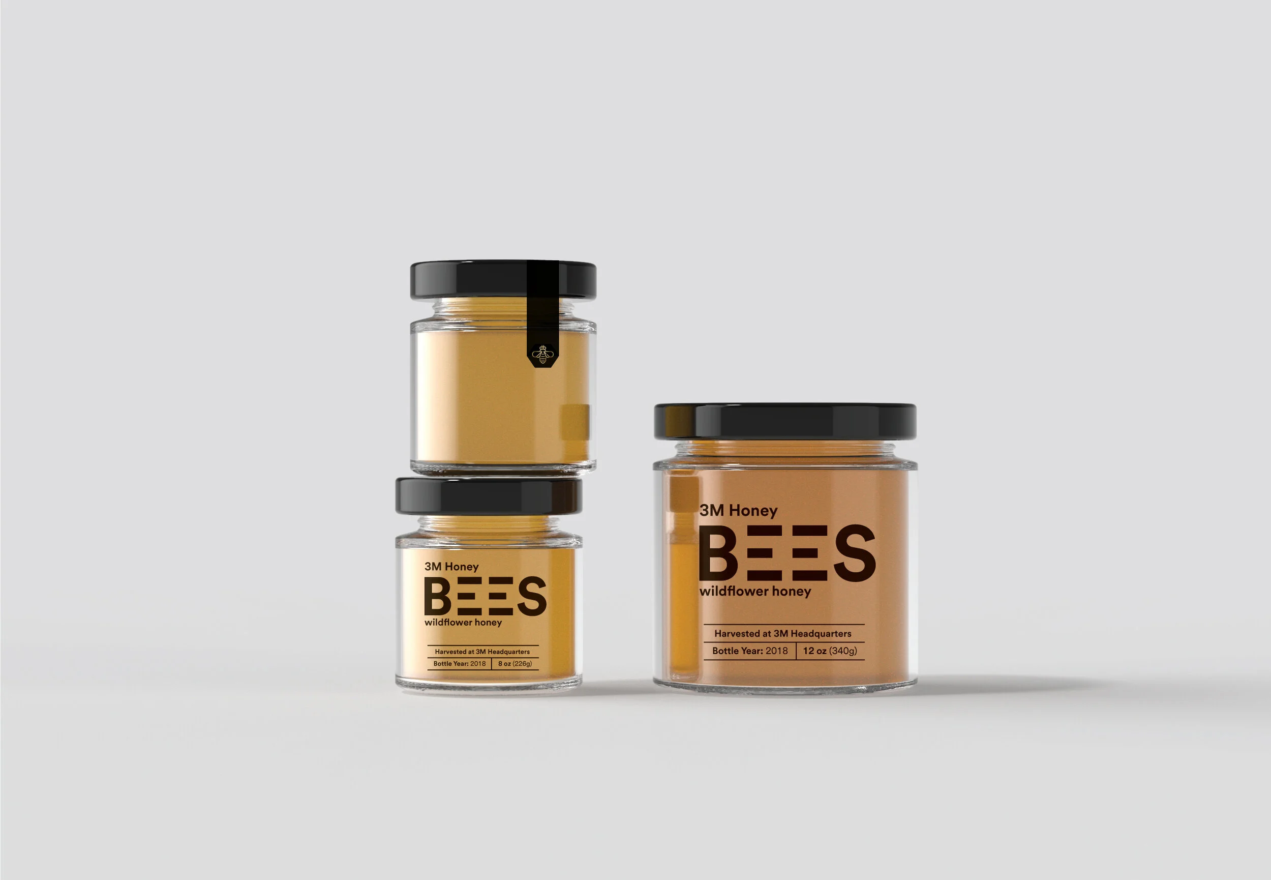 This may come as a surprise but 3M has several beehives throughout their corporate headquarters which are tended to daily by an onsite beekeeper. To commemorate the first harvest from 3M Bees I was fortunate enough to team up with the volunteer bee group and design custom packaging.